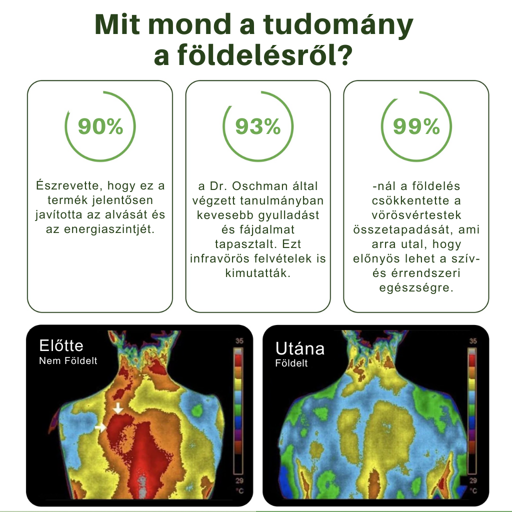 A földelés újra összekapcsolja testedet a Föld természetes elektronjaival, helyreállítva a természetes elektromos egyensúlyt. Ez jelentősen javítja az alvás minőségét, és csökkenti a gyulladás okozta fájdalmakat.